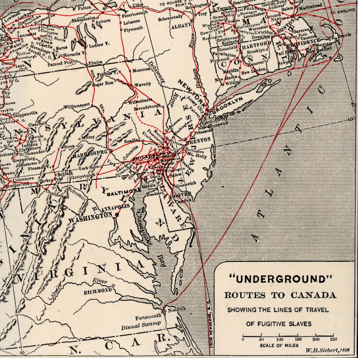 Wilbur Henry Siebert, Routes of the Underground Railroad, map from The Underground Railroad from Slavery to Freedom (New York: The Macmillan Company, 1898). Library of Congress, LCCN 68003375.